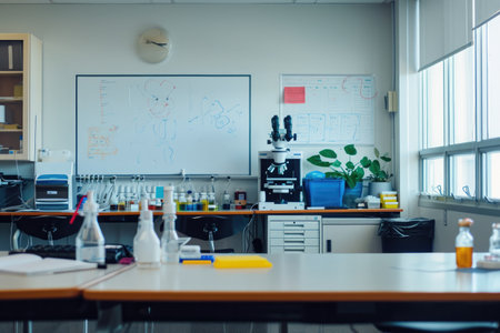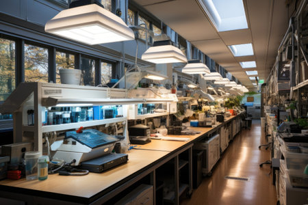 Interior of a modern scientific laboratory with equipment and science experiments.