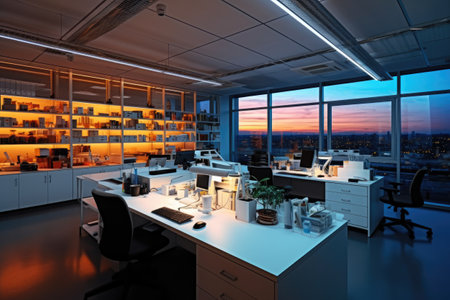Modern laboratory interior with equipment for research and development. Science and technology concept.