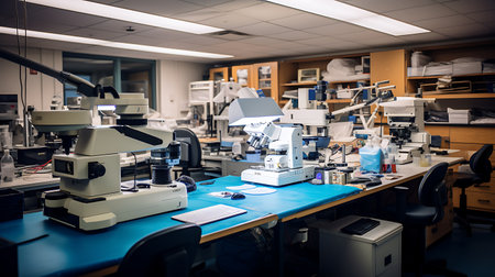 close-up of ultramodern materials science laboratory, with equipment and materials for groundbreaking research visible, created with generative ai