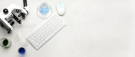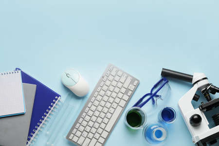 Medical equipment in a modern laboratory. Microscope, test tubes, test tubes.