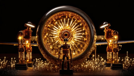A glowing robot with a mosaic of pulsing lights covering its surface AI generated