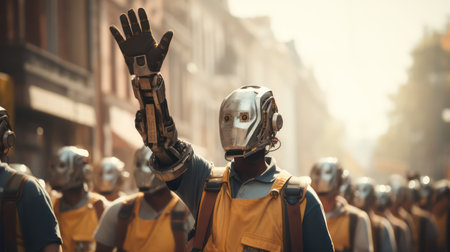 People and robots. Sci fi tonnel. Futuristic traffic. Concept of future. 3d rendering.