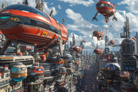 Futuristic Cityscape With Tall Buildings, A cityscape filled with hovercraft and anti-gravity vehicles