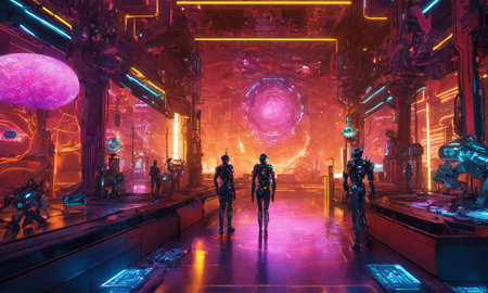 forecast vision of future in technology communication and robots futuristic virtual world, created with generative ai