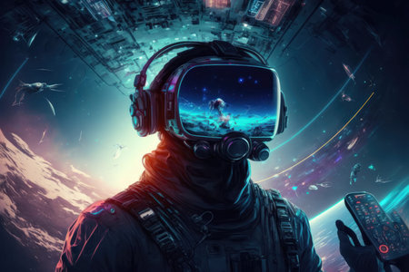 metaverse vr simulation gaming cyberpunk style, digital gamer streaming