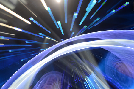 Abstract circular light speed background. Dynamic blue lines. Futuristic explosion of light. Colored rays in motion. Transfer of big data cyberspace. 3D rendering.