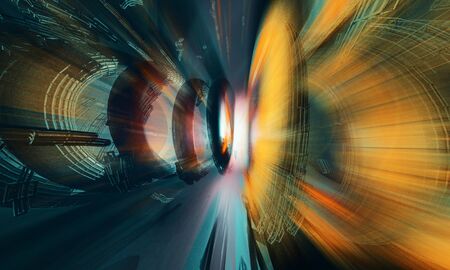 Flying in an abstract tunnel space-time continuum.Time 3d illustration for science films, music videos, broadcast, relaxation, meditation, audio visual performance, light show, night clubs.