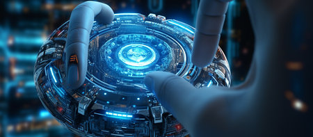 AI, Machine learning, Hand of robot touching on big data network