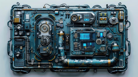 A detailed image of a steampunk-inspired device with intricate mechanical components and a futuristic aesthetic.