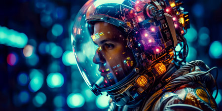 programmer in a space-age suit, symbolizing the future of coding in space technology. Generative AI