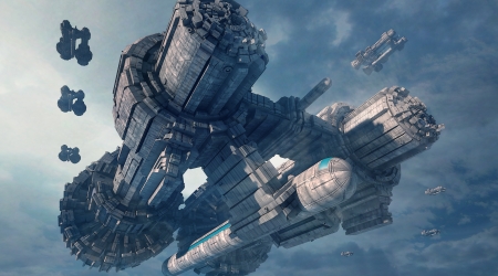 alien spaceship armada nearing Earth, for futuristic, fantasy or interstellar deep space travel backgrounds.