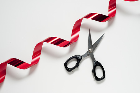 scissors and red ribbon isolated on white showing a ceremonial opening