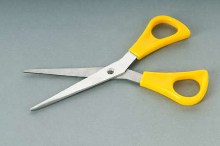 A shot of scissors with yellow handles