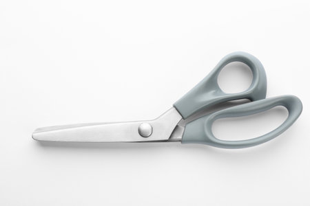 Closeup of simple, everyday scissors on a white background. A clean, minimalist image suggesting concepts of cutting, precision, and new beginnings.