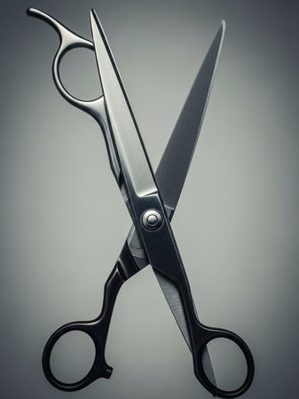 one Barber's scissors on a gray background close up