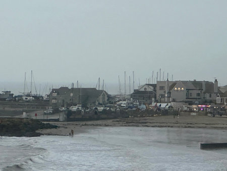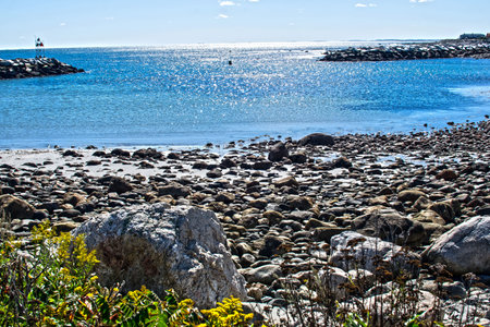Scituate Harbor overlooks a breakwater in Massachusetts - Oct, 2022. High quality photo