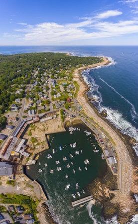 Village of Pigeon Cove aerial view in town of Rockport, Cape Ann, Massachusetts MA, USA.