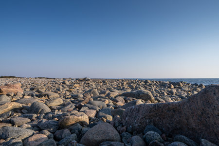 Rocky beach landscape at dusk. Kullaberg, Sweden.