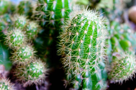 Texture green prickly cacti close-up, beautiful background. Densely growing cacti in Sunny weather grow on the African continent. Very sharp spikes that are invisible. Home decor,