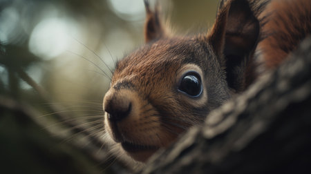 A squirrel sitting on top of a tree trunk. Generative AI image.