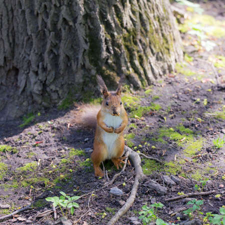 Squirrel stands on its hind legs, Russia, Moscow, park summer