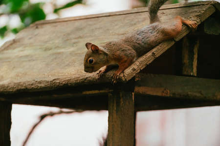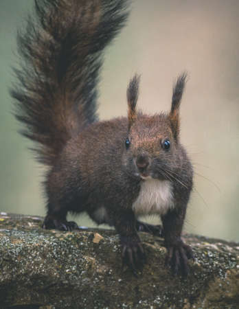 Squirrel in the forest, close-up. Wild animal.