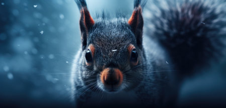 Portrait of Eurasian red squirrel (Sciurus vulgaris), dark variant