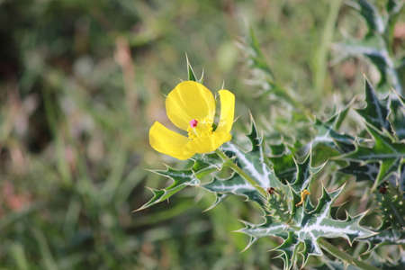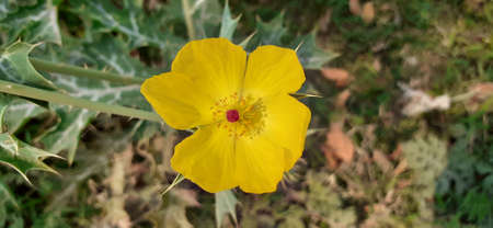 The Mexican prickly poppy plant with yellow flowers