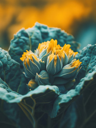 close-up of a flower bud, with intricate patterns and textures visible, created with generative ai