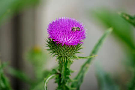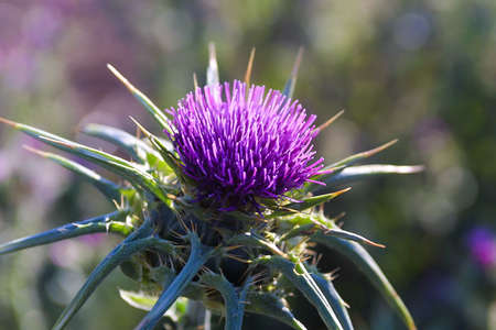 Pink flowers thistle, medicinal flower close up