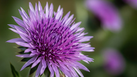 Purple thistle flower on a field