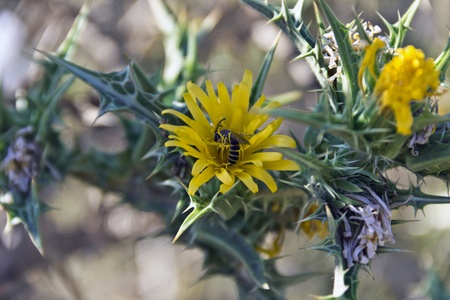 Greece, common golden thistle aka Spanish oyster thistle, known for medicinal and culinary uses in salad and soups