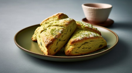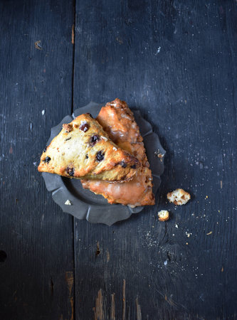 Delightful Scone raisin baked. Baked sweet bread butter biscuit. Generate Ai