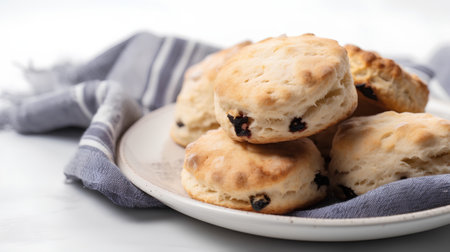 AI Generated. Gourmet scones with depth of field showcasing crumbly texture and rich flavors