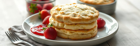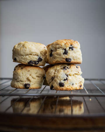 Scones traditional English delicious fresh homemade. Close-up photo. Dessert, beverage, and relaxation concept.