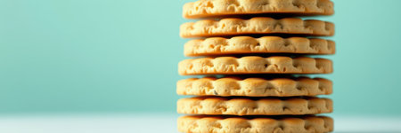 Stacked cookies on a light blue background showcasing a simple dessert arrangement and inviting presentation