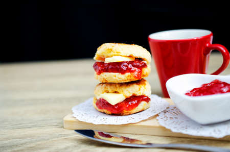 Close up of Scone homemade dessert stack on wooden table backgrounds concept