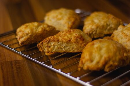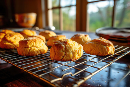 freshly baked biscuits cooling on wire rack, created with generative ai