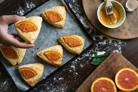Homemade scones with orange jam food photography recipe idea