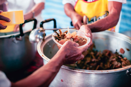 The hands of poor have been aided by charity food to alleviate hunger: The concept of social sharing