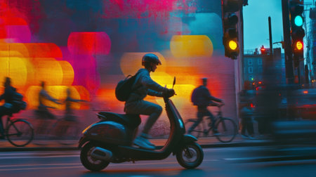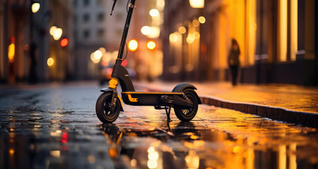 The electric scooter's silent journey through the cityscape at night marks a stride towards sustainable urban ecosystems and a lower-emission future.