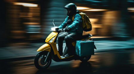 Express delivery for food order online by motorcycle to home. Business and food delivery service online with lifestyle in city concept