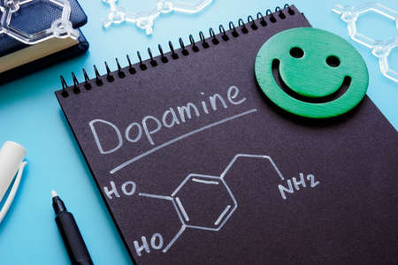 Dopamine chemical formula on the dark page.