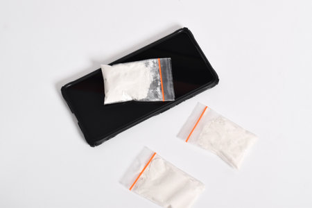 Cocaine in plastic packet isolated on white background. illustration of illegal drug substances, white powder, narcotics