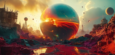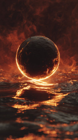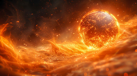 Blazing Sphere: A dramatic depiction of a celestial orb engulfed in fiery energy and intense heat.
