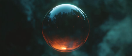 abstract ball sphere dark planet like shape modern design with glowing orange light and dark surface with reflections 3d render illustration