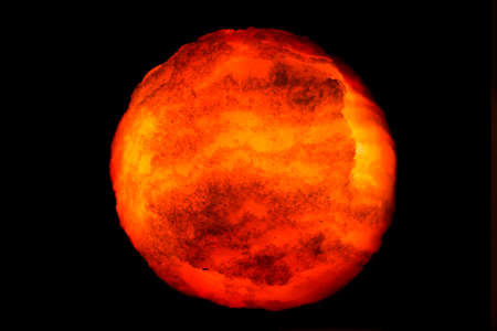 Fiery Flames on Red and Yellow Planet Isolated on a Black Copy Space Background.