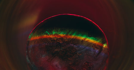 Virtual reality space with abstract multicolor psychedelic planet. Closeup Soap bubble like an alien planet on black background.