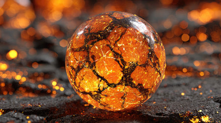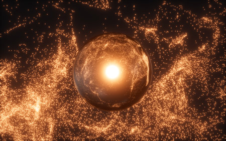 A mesmerizing cosmic sphere radiates fiery orange hues, filled with starry elements. Perfect for illustrating themes of space, energy, and creativity.