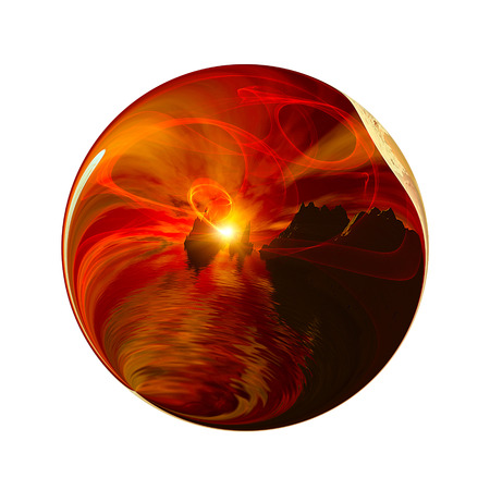 A fiery sphere engulfed in intense flames. Digital art depicting a burning globe.